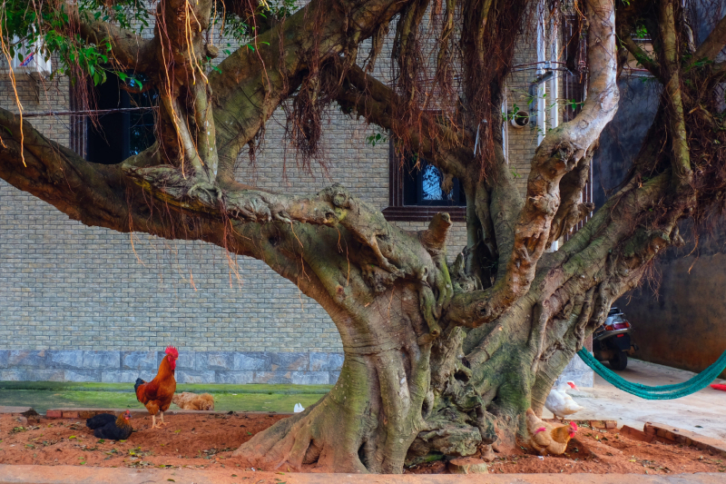 你瞧,它并没有被封在院子里独自把玩,就这么“裸”着,供人观赏,供鸡栖息。