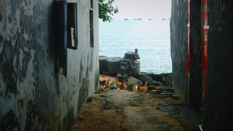 他们的房子从路边一直修到海边,形成一条一条的窄胡同,而也只有靠主路比较近的房子才修有院墙,另一侧靠海的房子则是真正的“面朝大海,春暖花开”。