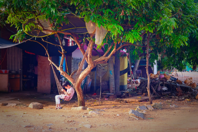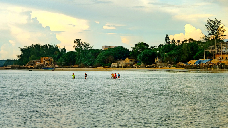 海浪拍打在村民的房檐下,鸡窝盖在沙滩上,傍晚退潮的海湾,是孩子们游戏的大“池塘”……