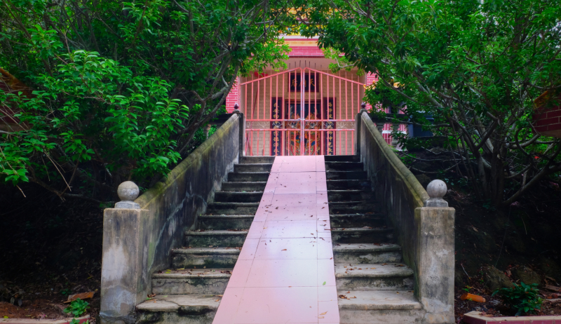 小镇上有很多的庙宇,海边村也有一座,藏在路边的树荫中,不细看发现不了。从路边竖立的牌子可以看出,这里的天后庙是村民集资建设的。