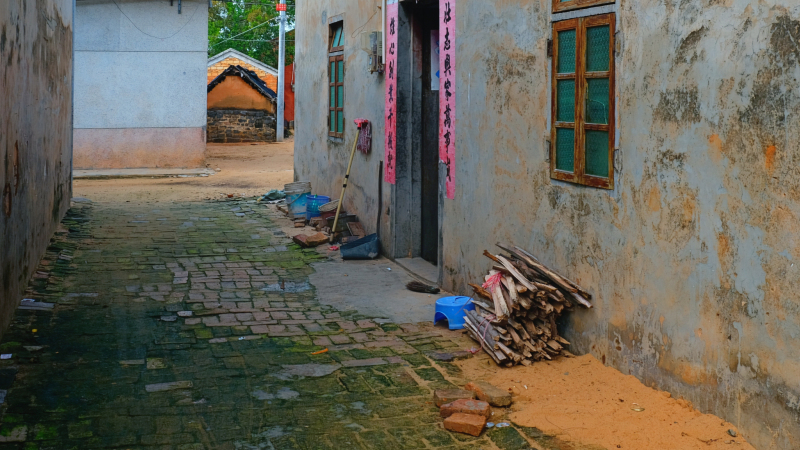 有一些人家大门二门上春联的鲜红还未褪去,尽管春节已经是几百天以前的事了。借着天井的采光,虽然看得出没有多富裕,但确是一个温馨可靠的家呀。