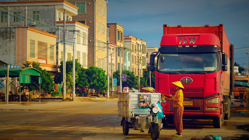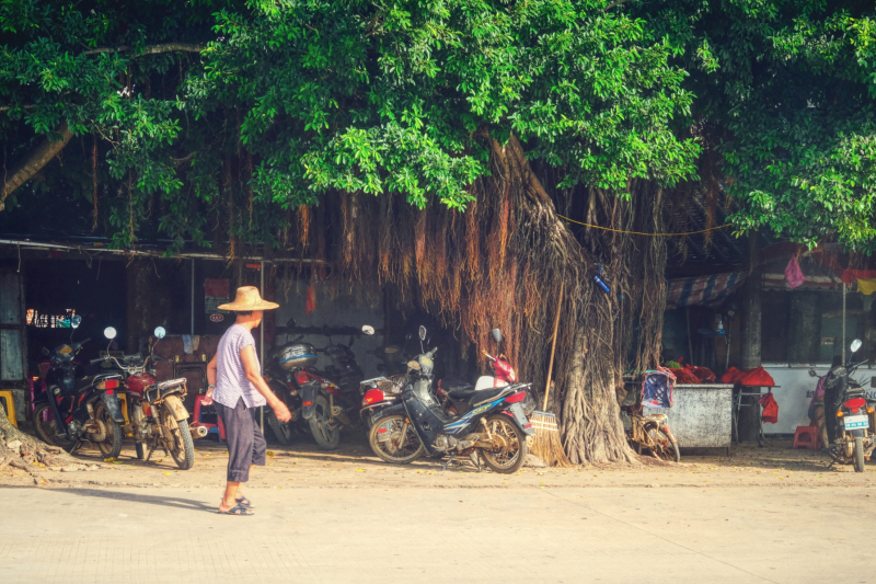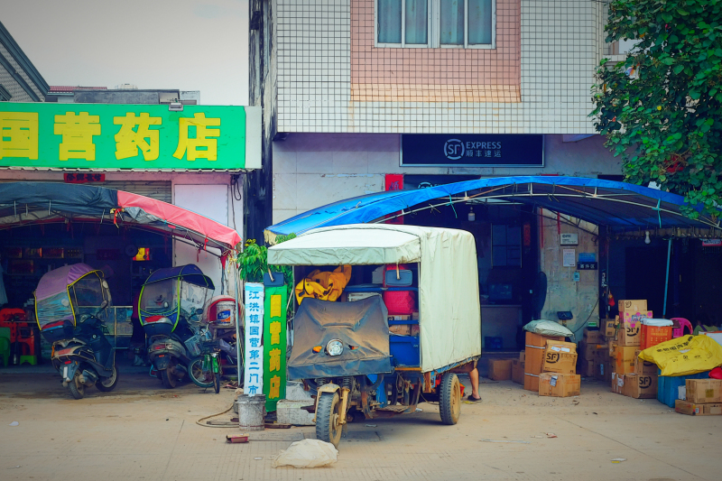 江洪镇上有通遂溪、湛江的大巴车,我看到它路过民宿的楼下,停在不远处的汽车站上。