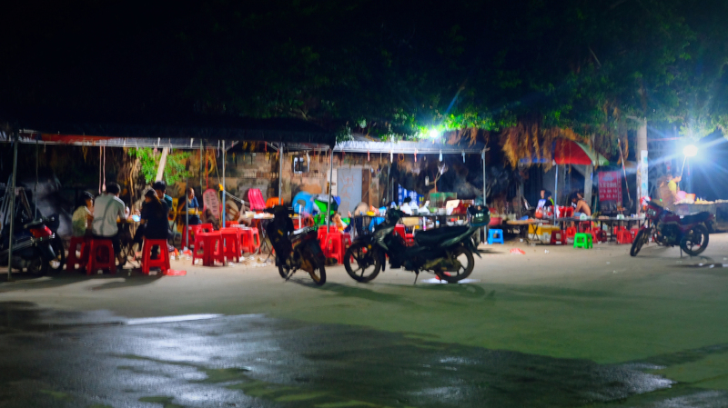 到达江洪的第一天晚上,出去找吃的,就在距离民宿百米的港口边,看到了一个小吃摊。