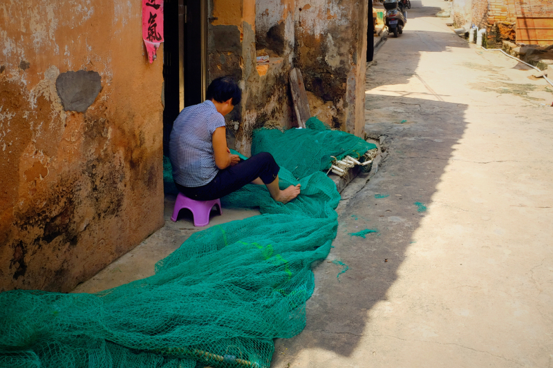 去渔村的巷子里转了转,坐在门口织渔网的女人很热情,滔滔不绝地跟我讲(我猜应该是)她们家族的故事,带着我前院后院逛了一个遍,可惜我一句也没听懂……