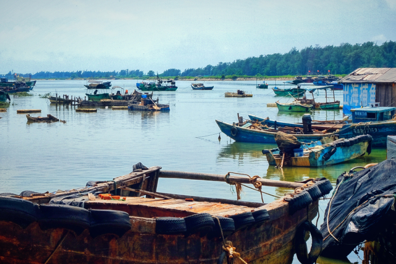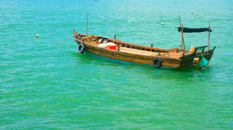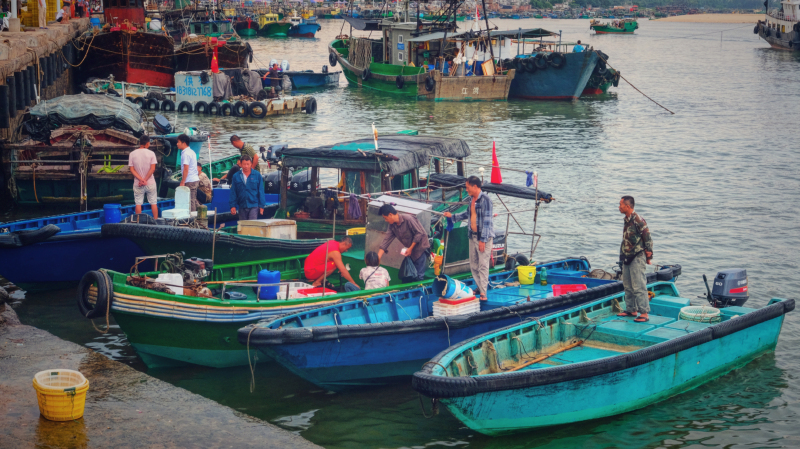 船在这里不仅是捕鱼的工具,还是一种交通设施。每当马达声哒哒哒响起,摆渡人就开始了他的工作,拉着乘客到一公里之外对岸的小岛,船票是两块钱。