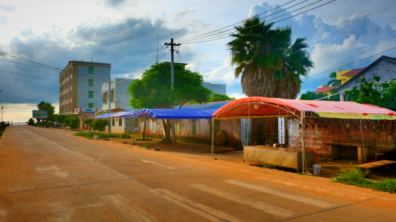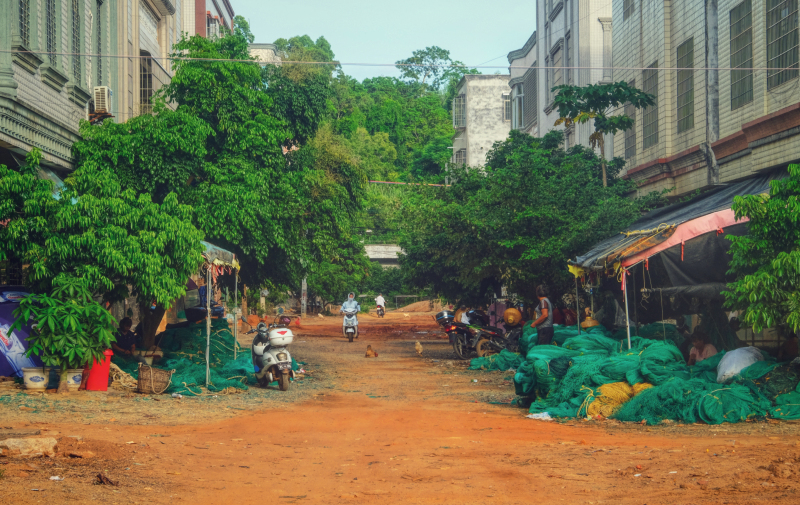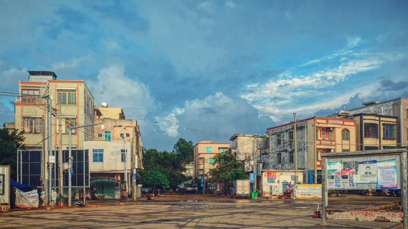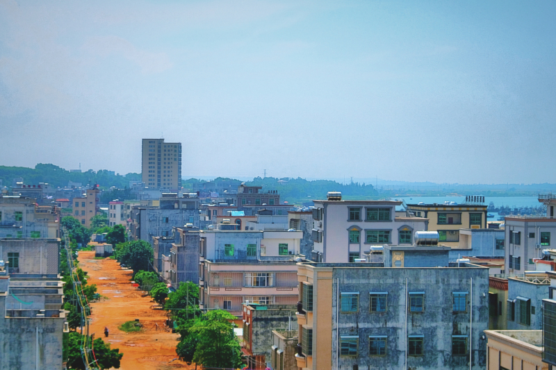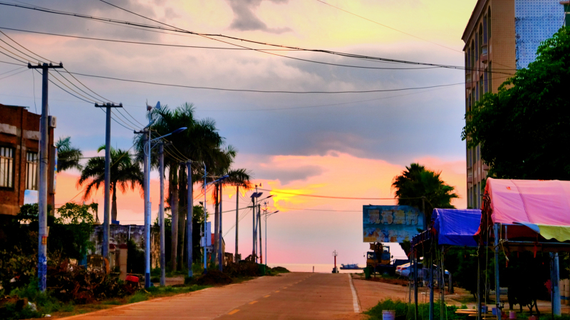 看一侧茫茫无际的大海每天的云朵都不同;看另一侧楼宇之间,人们在“毛坯”的土路上穿梭来往。