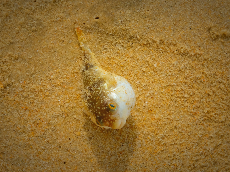 我把它拎起来,那河豚噘着小小的嘴巴,身子越来越大、越来越鼓……之后就一动不动了。