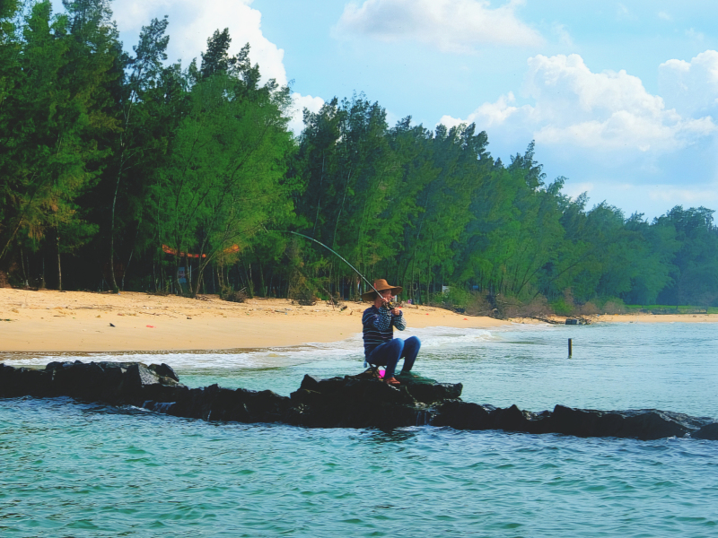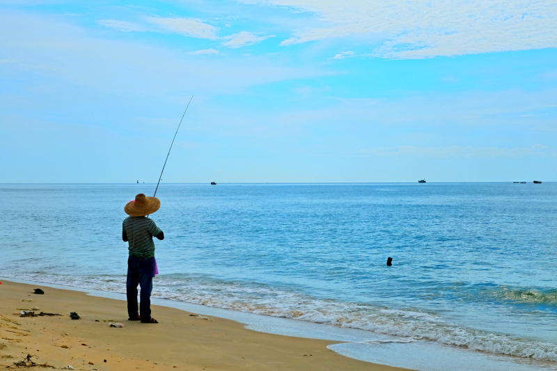 过去和他们聊天,是几位中年模样的大叔,湛江当地口音。一如往常的习惯,他们是在这个空闲的周末相约来岛上钓鱼的。