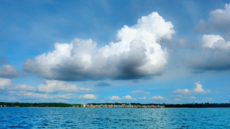 当大团的云朵升腾起来,“上帝视角”随即开启。整个人仿佛被送去了很高很高的角度,看着小小的人生,感受自我的微不足道,却又被大海填充得能量满满……