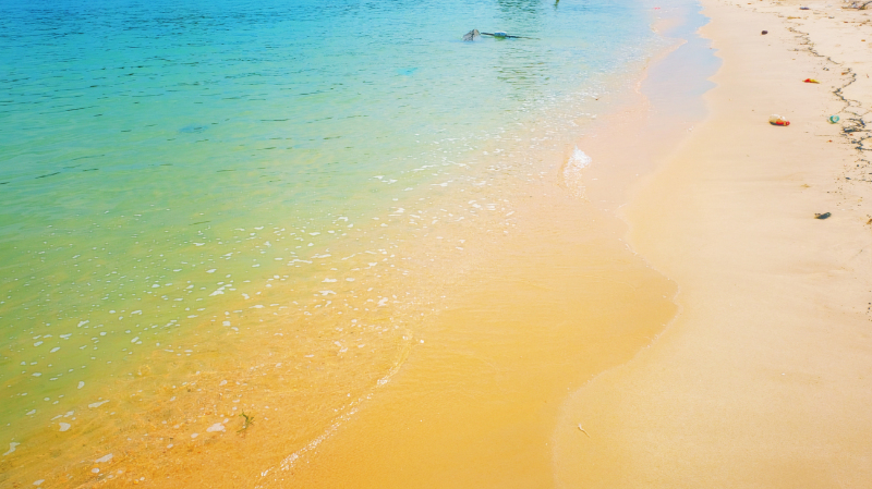 挥手告别摆渡人,迎着咸湿的海风,顶着午后刺眼的海岛阳光,踩着脚下的一片柔软,感受着恣意拍打脚趾的浪花,在少有游客造访的地方,不由自主地,你会把这里当做一处世外桃源,放空,再装满。