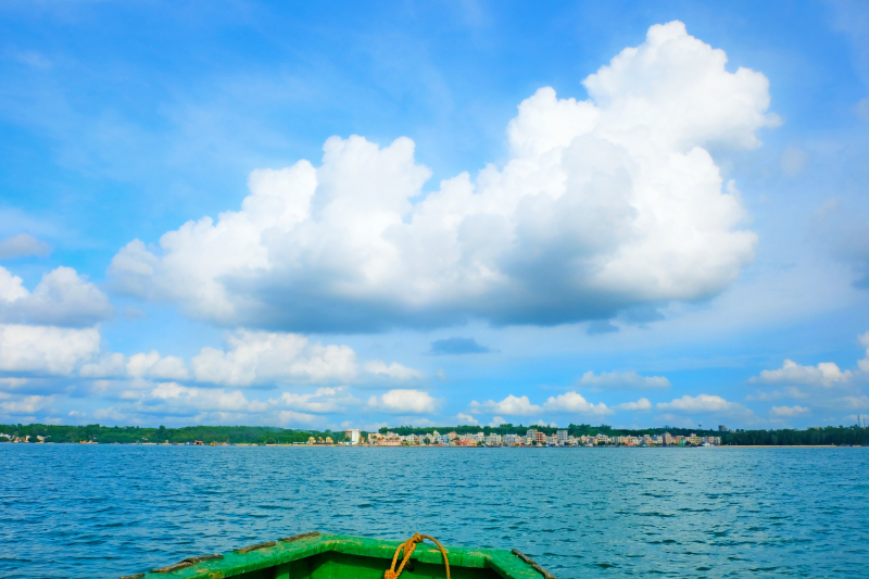 最终以50块钱的价格包了他一条船,可以拉着我们到海上小游一圈。谁知这一去,就绕了接近一个小时的时间。