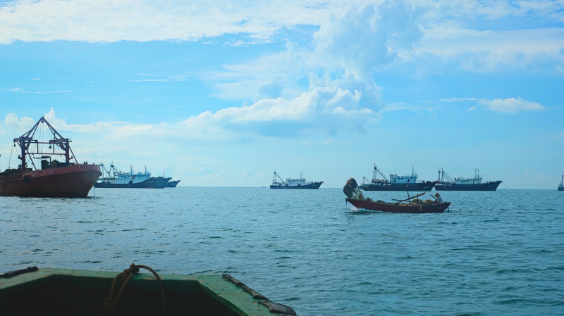 十几分钟后,我们终于接近了大渔船。
