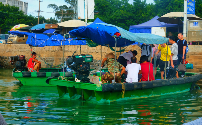 港口随时有渔船摆渡来去,2块钱一张船票,只需要几分钟,你就是“岛上人”。
