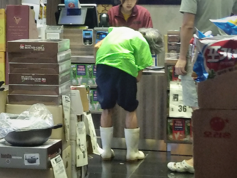 期间她去了一趟便利店,买了一袋米。在收银台,她弯着腰、努力抬着头,和店员理论着价格的事宜,店员对她的态度并不太友善。8公斤的米,她提不动,店员并未帮忙,一个购物的小伙子抢先一步,提着米帮她放在车上。