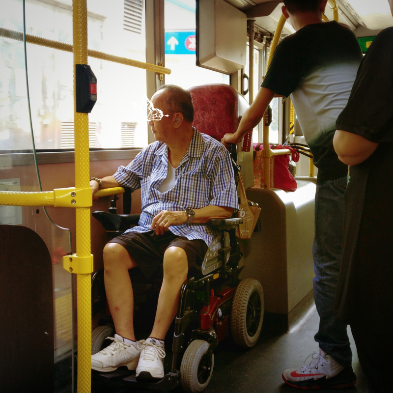 在香港旅行期间,我曾不止一次看到老年人一个人摇着轮椅去乘坐公交车,这让我觉得很好奇,因为在大陆,这是不好操作的。所以我就站在那里看,看香港的老人怎么上车。