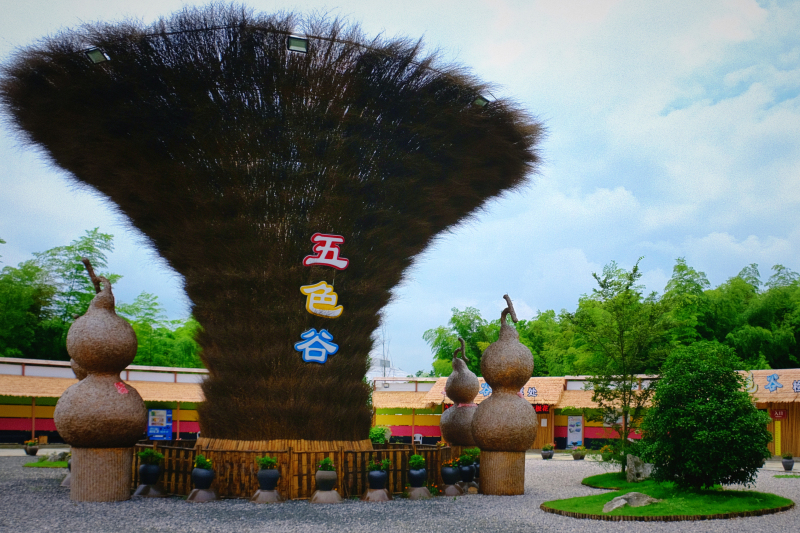 这“五色”不是随随便便的五个颜色,而是将道家的五色(赤黄黑白青)、儒家的五常(仁义礼智信)和太极的五行(金木水火土)巧妙糅合在一起,融道家文化于其中,依次将园区分为五个部分:热烈、平和、素洁、深沉、清新。