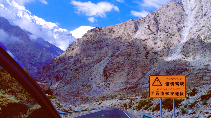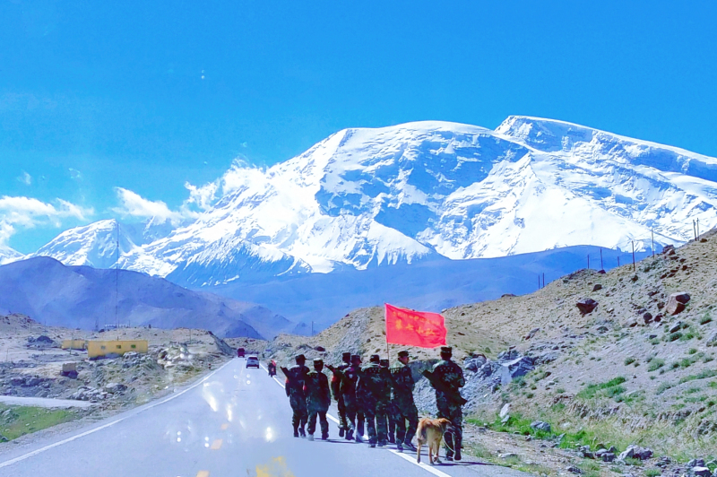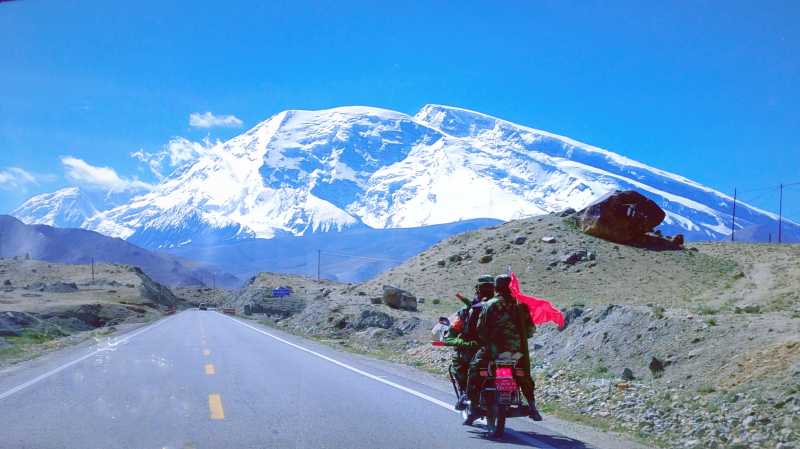 追着这慕士塔格峰继续前行,两侧终于有了人烟和民居。路边戴着红袖章的护边小队似乎是驻扎在山下的军人,他们并非典型的新疆面孔,而是来自于内地的年轻娃娃们。