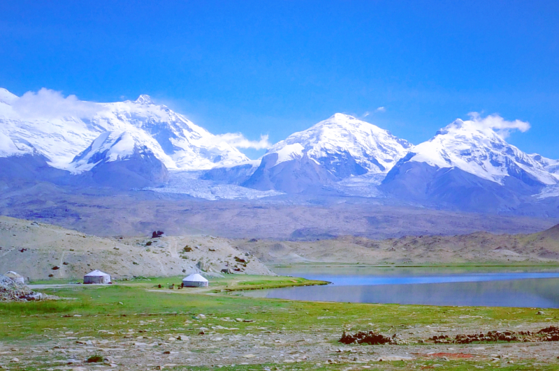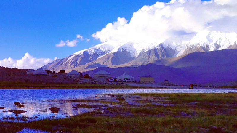 去帕米尔高原旅行最好的季节是夏天,因为这一时节的卡拉库里湖最为温柔靓丽,放牧的克州人会将帐篷临时扎建在湖边,牛羊马群星星点点,衬得整个“景区”熠熠生辉。