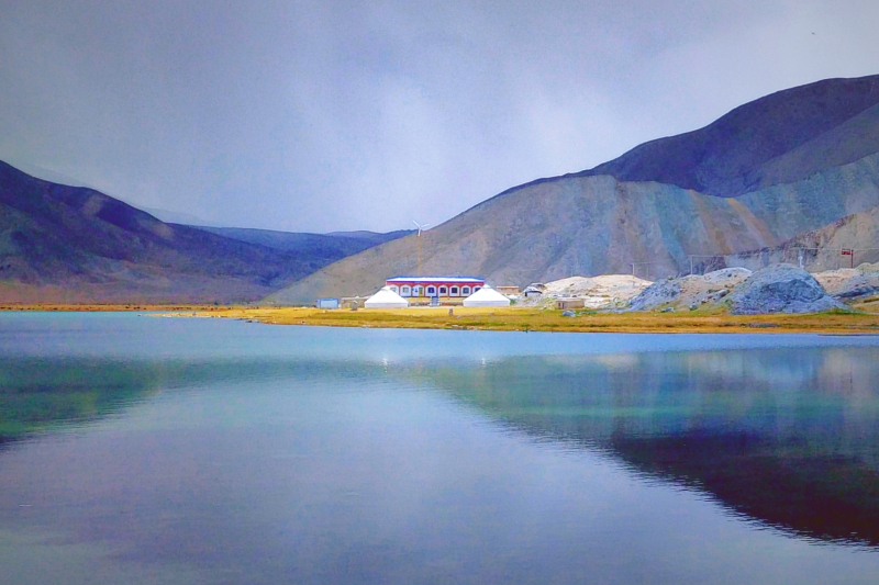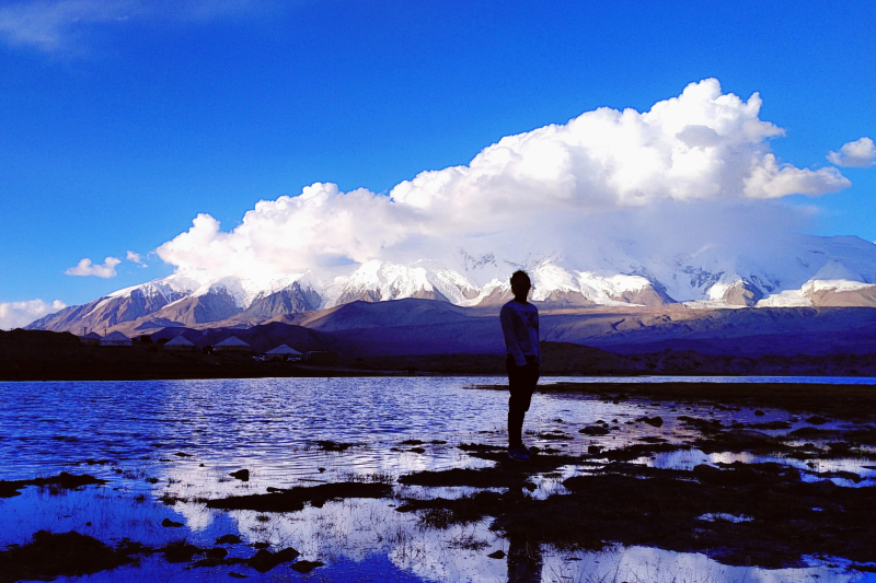 卡拉库里湖周围没有河流的牵扯,它遗世独立。它宁愿藏身雪山之下的“地下通道”默默地兀自向南,也始终不肯与这俗世“同流合污”;