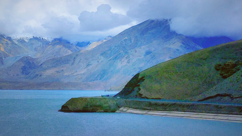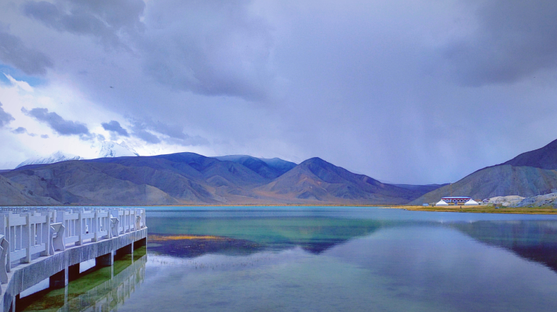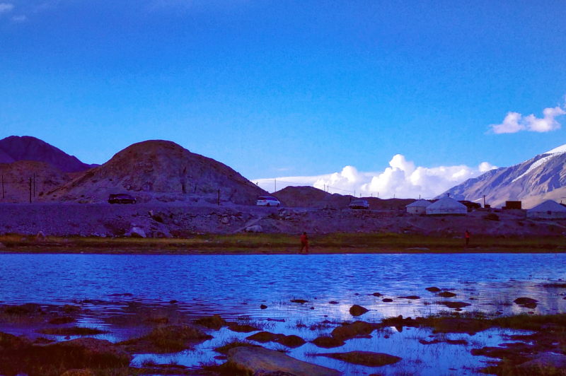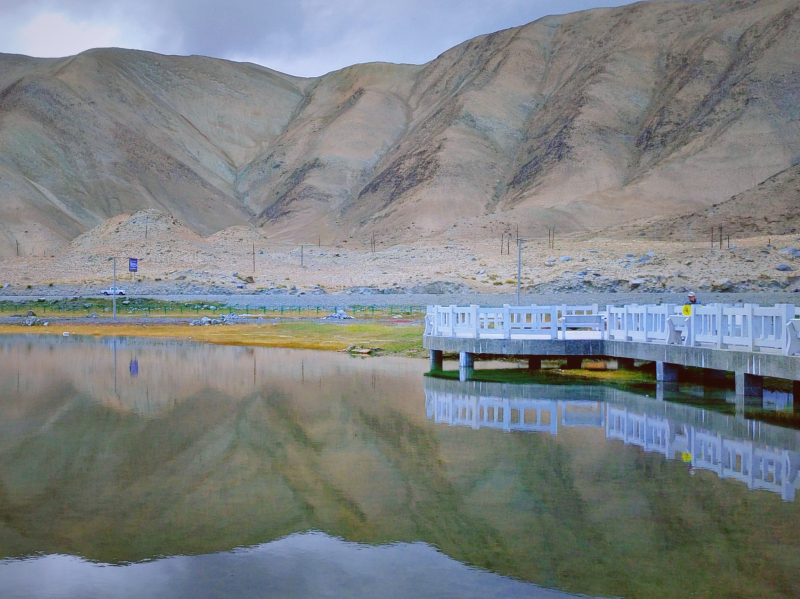 可惜当我第二年再次自驾帕米尔高原的时候,一条人工砌造的水泥栈道野蛮地延入湖中,三藏法师笔下的这片“波谜罗川大龙池”的天然风光,就这样被人为破坏掉了。
