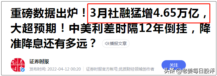 3月社融数据是超预期的,也就是说市场并不缺钱,所缺乏的主要是信心,包括中美利差的倒挂,也增加我们降息的压力!
