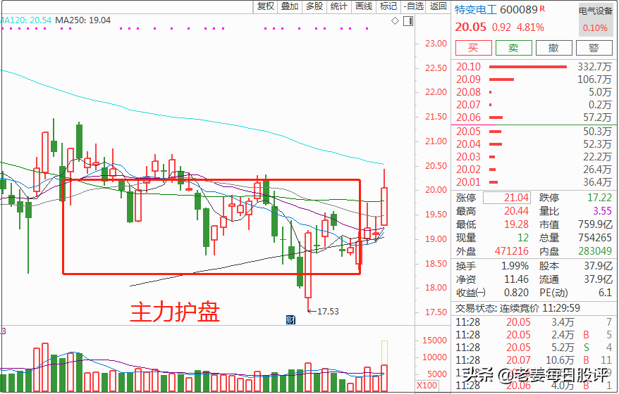 今天开始有获利盘的出逃,这种上升趋势的形态,可以留意中期20日均线的上升趋势,只要不是典型的出货信号,主力也不会轻易放任股价下探。