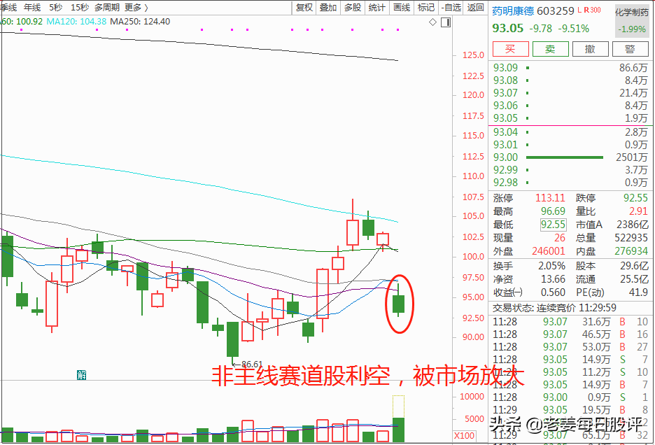 像昨天有同学问我的药明康德,也就是一个减持3%的公告,我想一个小利空跌个4-5点就得了,结果居然能够往跌停板上按,传闻是二季度业绩增速可能会下滑。