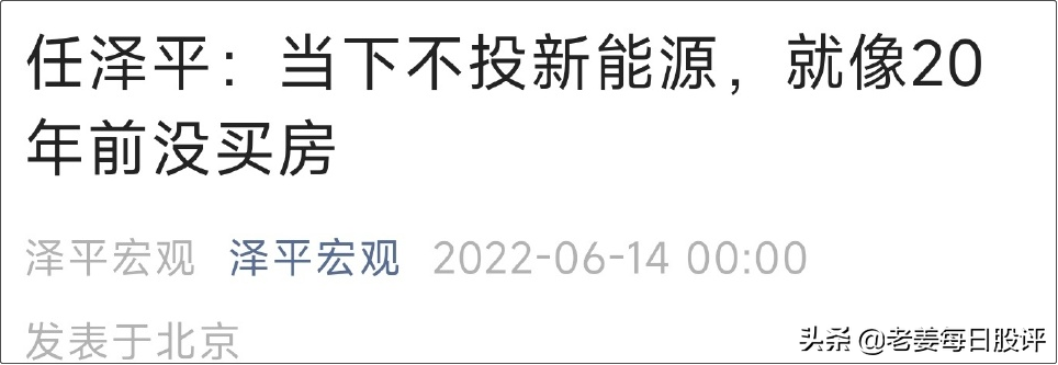 这个比喻我认为稍微欠缺点,现在不投资资本市场,就像20年前没有买房,而是目前市场最确定性的方向,就是新能源!