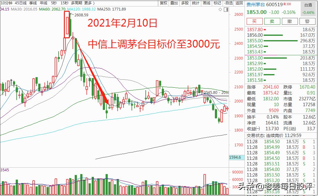 因为之前中信的反向吹,大家仍旧历历在目,茅台在2600的时候吹到3000,结果一路大跌近40%,让人非常无语。