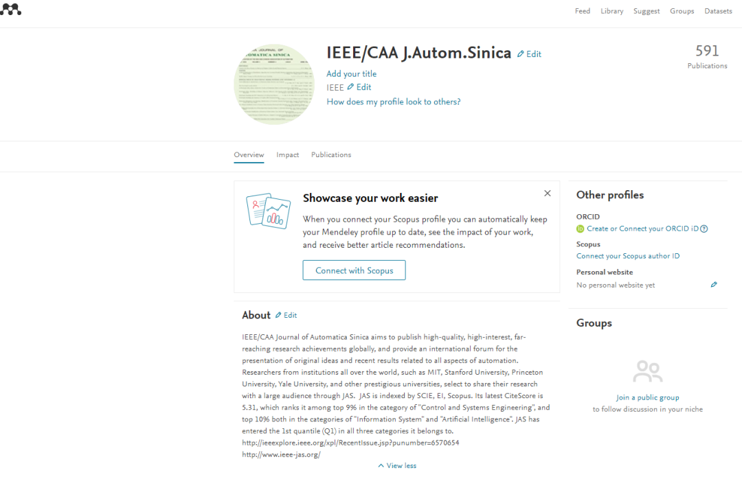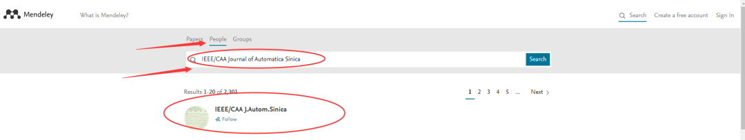 进入“Mendeley”官网后搜索“IEEE/CAA Journal of Automatica Sinica”