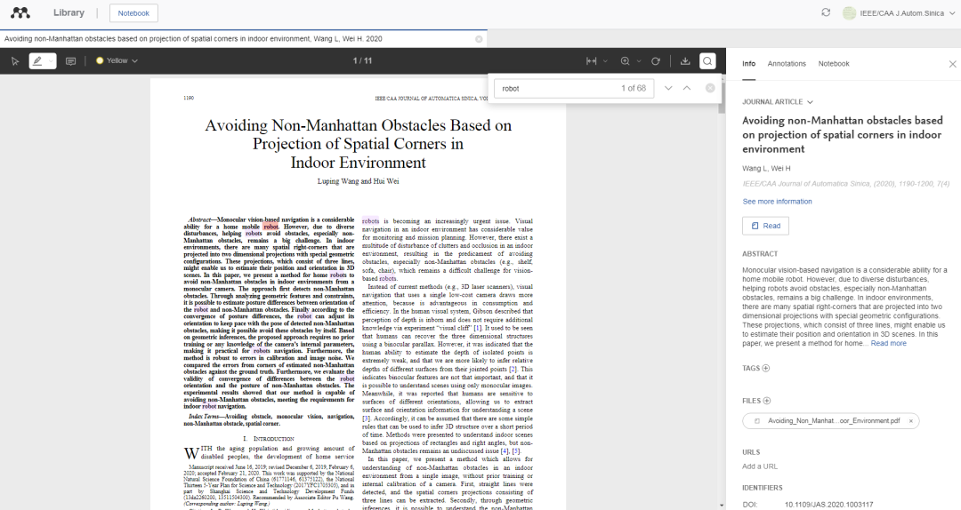 全文智能识别,题录自动补全(标题、DOI等关键信息);