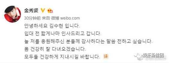金秀贤剪了板寸头,在众多入伍士兵中依然是最显眼的一个,并且金秀贤在微博上感谢了中国粉丝:“想对一直以来支持我、予以应援的各位说声谢谢,希望大家都能够健康”。据了解,金秀贤将于2019年7月22日退伍。