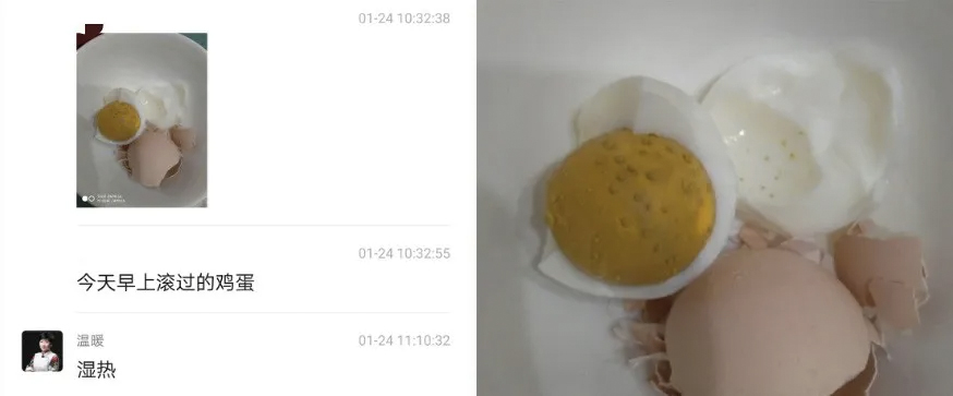 1月24日,妈妈发来滚过的鸡蛋图片,温暖老师判断为湿和热,根据孩子的情况调整了穴方,并交代妈妈,一定要将孩子的手温热起来后,再做清大肠。