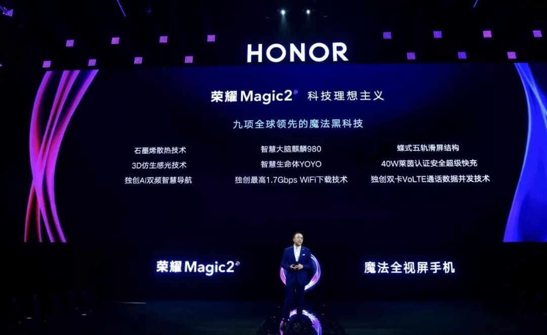 Magic系列的整体定位是超前于当前科技的,也就是在目前的价格区间中,Magic能够和友商主流机型抗衡,并且有不输于旗舰机的性能和科技。如果说两年前荣耀Magic1更像是概念之作的话,那么荣耀Magic2的发布,意味着荣耀领先业绩,进入行业“没有对手”的无人区。