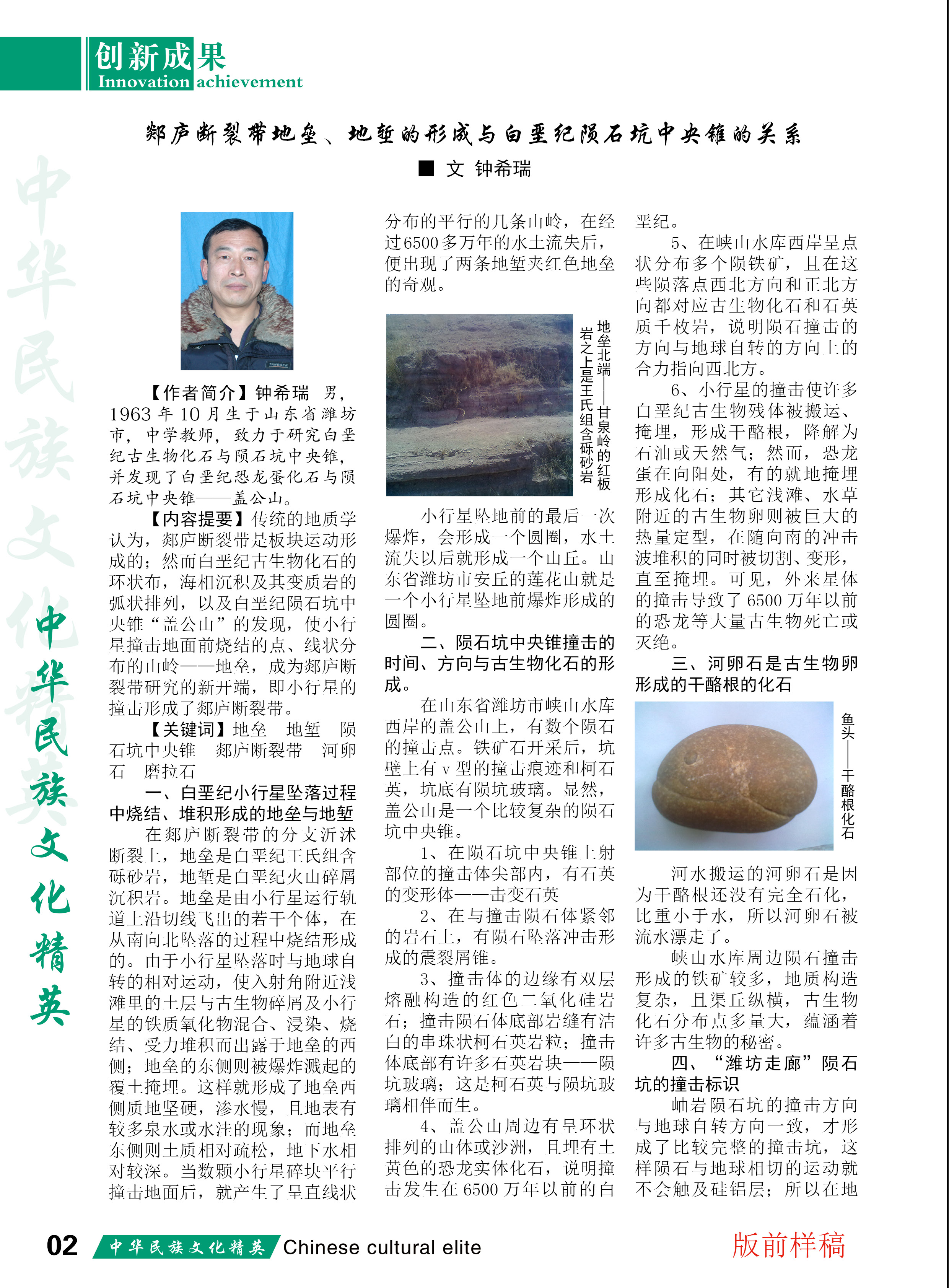 目前,我们一旦确定“小行星撞击是地质变化的动力和矿物的主要来源”,则“超导”问题就会迎刃而解;这样,地质学与物理学就会出现巨大的变革。