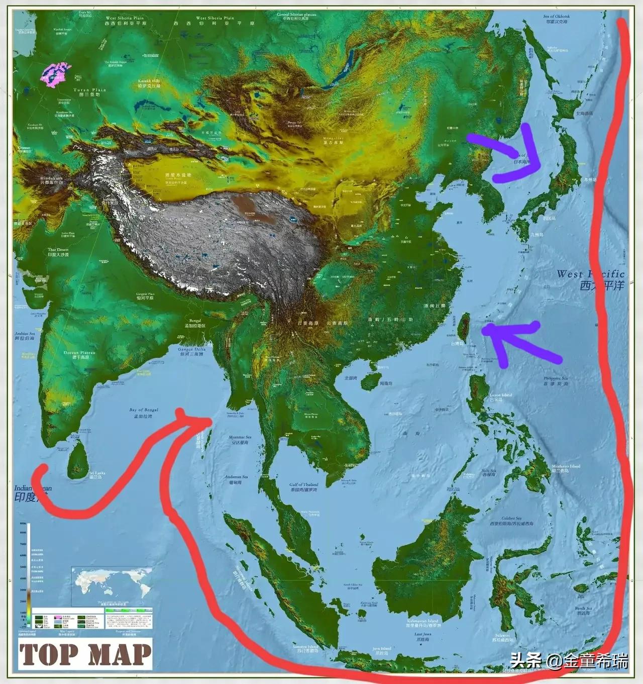 B“花采列岛”是白垩纪陨石坑冲击波层流逆掩(台湾岛)或顺推(日本岛弧)形成的地质构造。