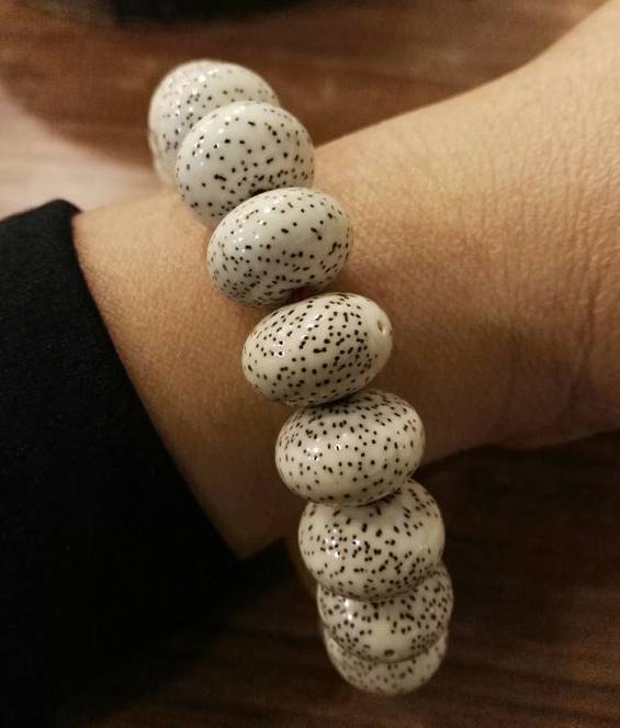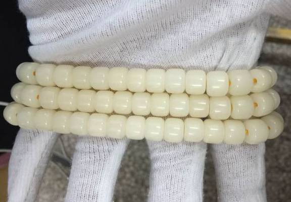 挂瓷期间,文玩手串忌讳水、油、汗、灰尘,挂瓷通常不上手盘,需要戴手套盘玩,因为手上有汗有油有脏东西,没法挂上漂亮的瓷。
