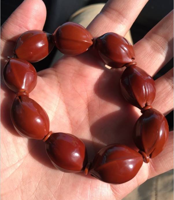 包浆是什么?通过字面意思也不难理解:包裹着一层浆,这么想就非常好理解了,包浆就是珠子表面通过长期氧化、融合油脂汗液、逐步形成的一层温润的厚重的包裹,包浆之后的文玩显得低调含蓄、深沉内敛。