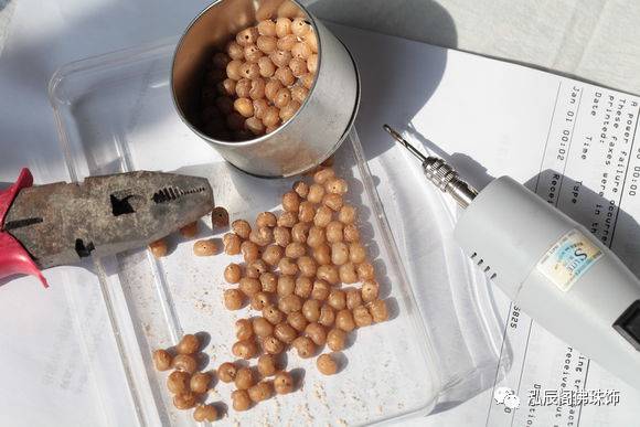 磨皮很虐手,许多人表示做了一串就再也不想做第二串了,好不容易皮磨干净了,手还疼着呢,又要打孔!打孔也不是轻松活儿,虐心!因为金佛草菩提子又小又滑,固定不易,令人抓狂,总之就是各种艰辛,个中滋味只有亲手做过的人才能体会吧。