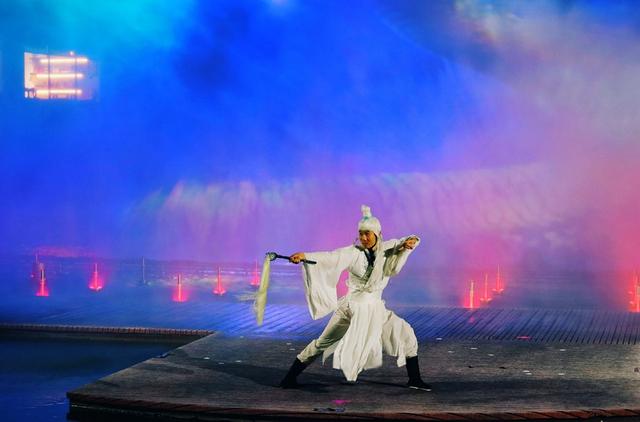 不远处大气磅礴的水幕电影《归真纪》让人耳目一新,每晚只有一场, 绝对不能错过。真人实景演绎,再现仙人葛玄一生云游四方的故事,以水幕光影为载体,分为“序、长生、渡劫、金丹、飞升”五个章节,跌宕起伏,身临其境。这场演出一定要早点占好位置,个子不高的去晚了恐怕只能看到别人头顶。