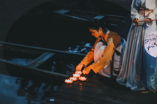众妙阁旁是有一片碧水,可以乘着小船,亮着纱灯,伴着水雾,在仙气飘飘的湖上泛舟,感受太虚幻境的气氛。岸边时不时有身穿古装的小姐姐放下一盏盏水灯,仿佛瞬间穿越到某个历史剧中的场景。
