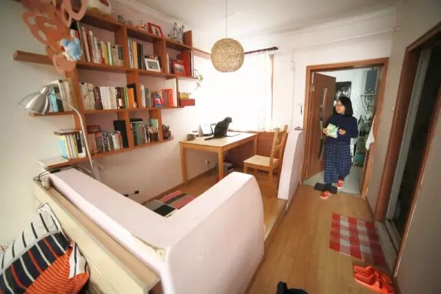某个心情莫名烦躁的晚上,晓磊看完一本《断舍离》,忽然再也无法忍受床的大块头,但无法可想,只能把床横竖掉个个儿:“这样能省出一小块空间来放鞋和书包。”但是一个人的力量根本不行,他搬到一半儿,床卡住了。