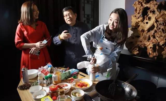 面对同场直播的嘉宾——时评人杨锦麟,一位跟她年龄相差40岁的“老男人”,蒋梦婕显得很淡定,端着一道酸奶草莓拌黄桃的水果沙拉,就上了直播饭桌。