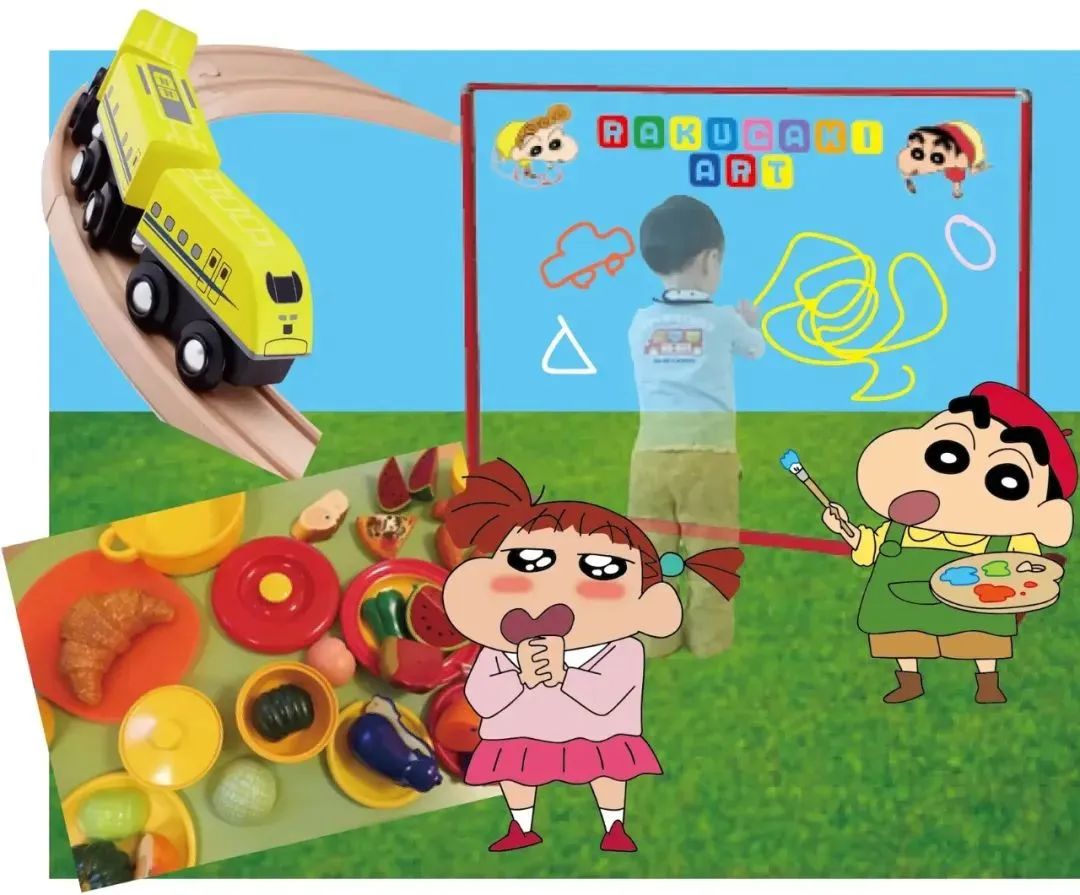 在沉浸式“蜡笔小新”的世界体验的同时,也能让父母和孩子一起活动身体享受游戏的乐趣。另外,还准备了过家家、木制电车等玩具、喷绘、涂鸦等娱乐场所,是让小孩子也能尽情享受的消费设施。