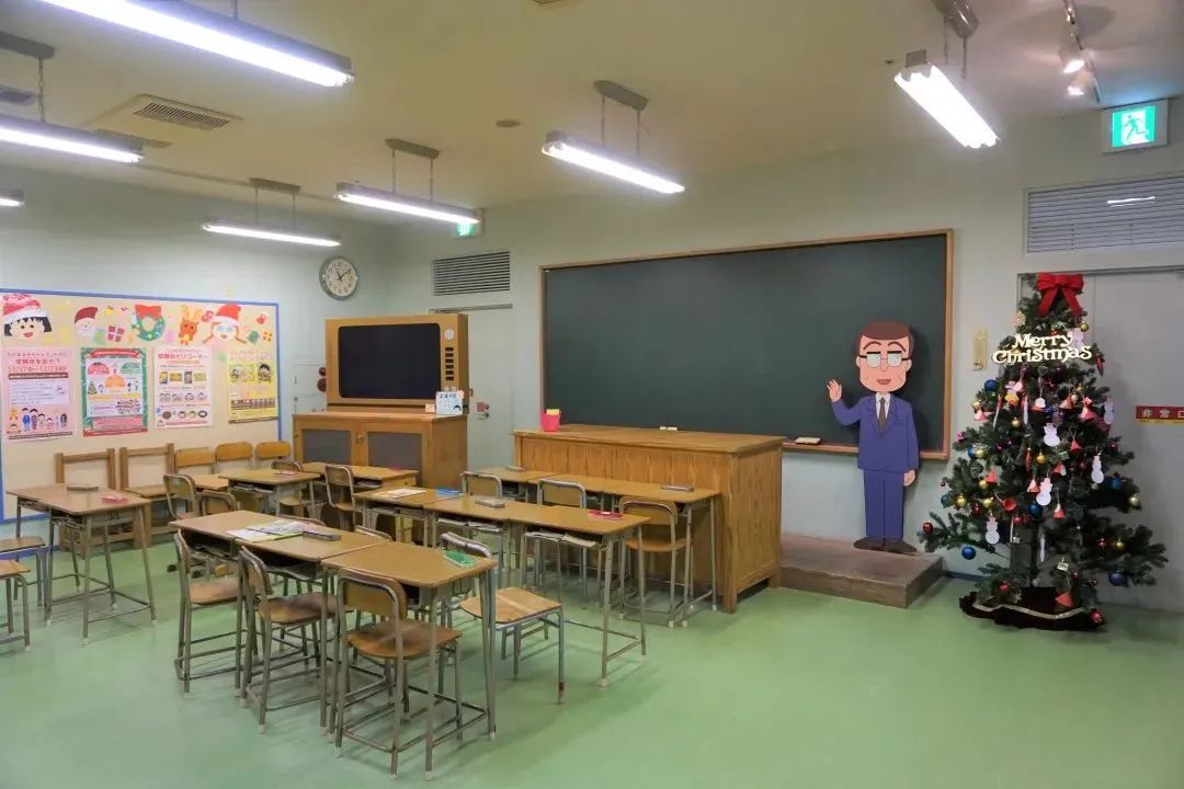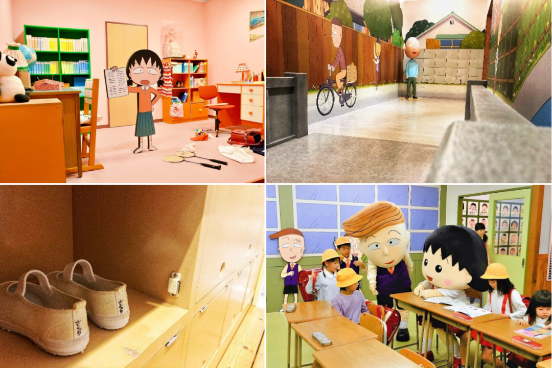 首先来到的是“小丸子的日常”区。这里有大家熟悉的小丸子和姐姐的房间、上学途中经过的巴川、所读小学的鞋柜,还有就是“3年4班教室”。