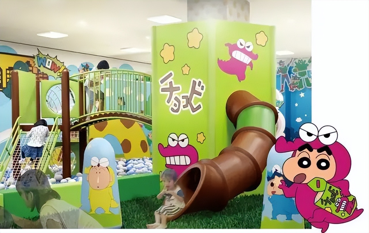 这是日本第一个以“蜡笔小新”为主题的常设型室内游乐场。该设施作为大型室内游乐场,拥有以动漫中登场过的点心——巧克力饼为主题的体育设施“巧克力岛大冒险”、小新的屁股为原型的空中蹦床“屁股蹦床”、双叶幼儿园里的滑梯为主题的“超大长颈鹿滑梯”等。
