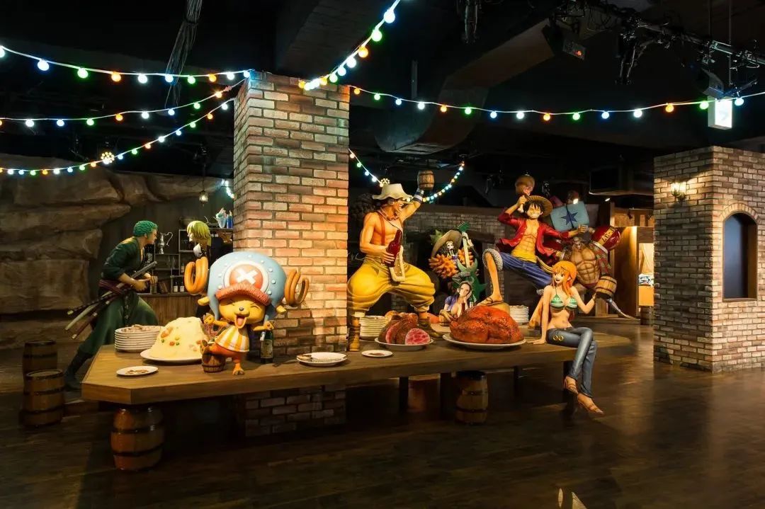这里不仅有各种娱乐设施,还有主题餐厅和咖啡厅,山治餐厅里循环播放海贼王主题曲,动漫人物的真人等高模型出现在每一个角落。最重要的是,在东京海贼塔内,人们可以参观从未公开过的Sunny号船内部和独家放映的海贼王特别篇动画。