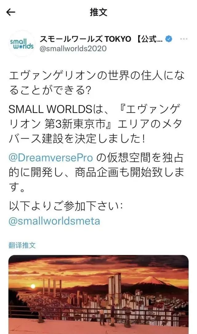 日前,日本微型室内主题公园开发商Small Worlds宣布,将与元宇宙开发平台DreamVerse合作开发——打造以日本动漫知名IP新世纪福音战士(EVA)为背景的元宇宙空间“第三新东京市”。这一消息也立即引发了行业的关注。