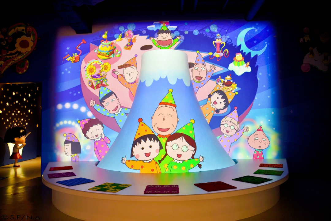 “小丸子的梦想游乐园区”中有一座富士山,每隔10分钟便会有2000年的片头曲《大家来跳舞》的光雕投影,不同季节还能够看到不同的短视频。
