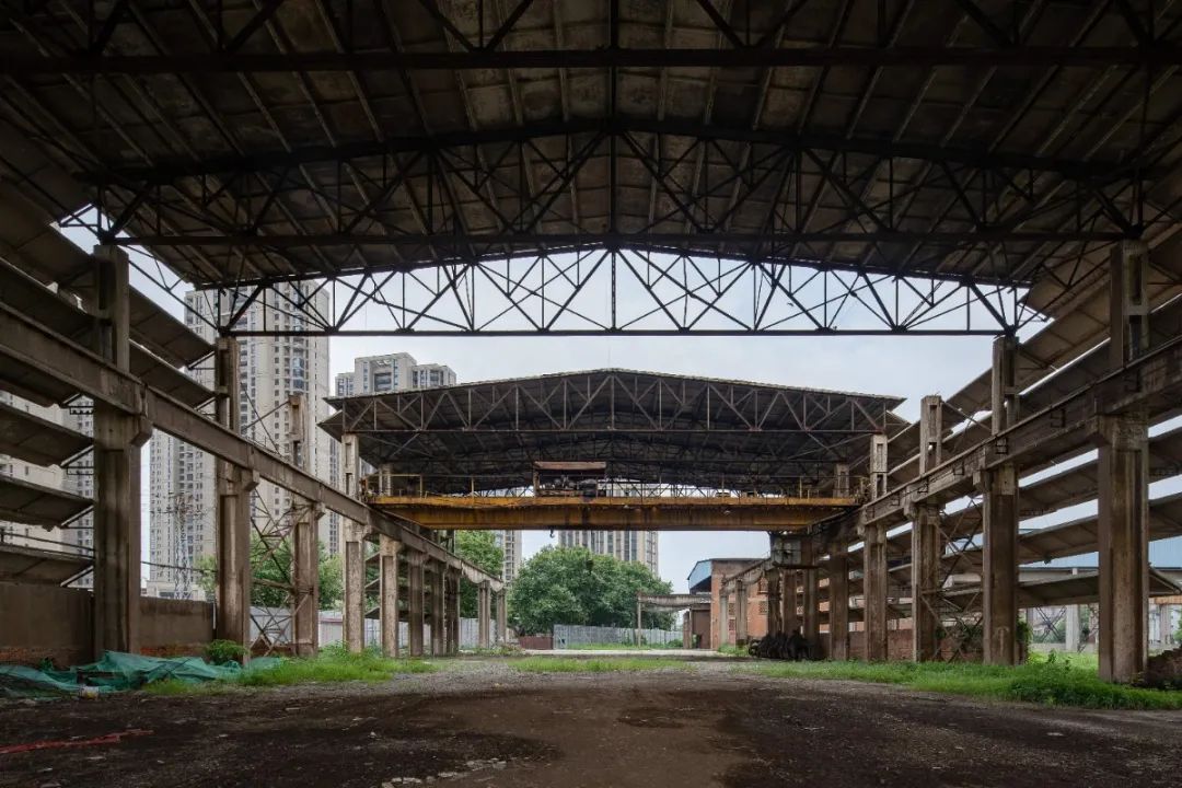 比如被拆除的2号厂房,主要为单层单跨排架结构房屋,位于空间十字轴线上,对空间与视线的影响较大,而且没有突出的风格和利用价值,设计将其进行整体的拆除。